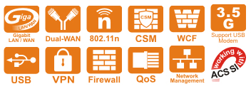 > Soporta modem USB 3.5G para iniciar negocios en cualquier momento y respaldo failover
